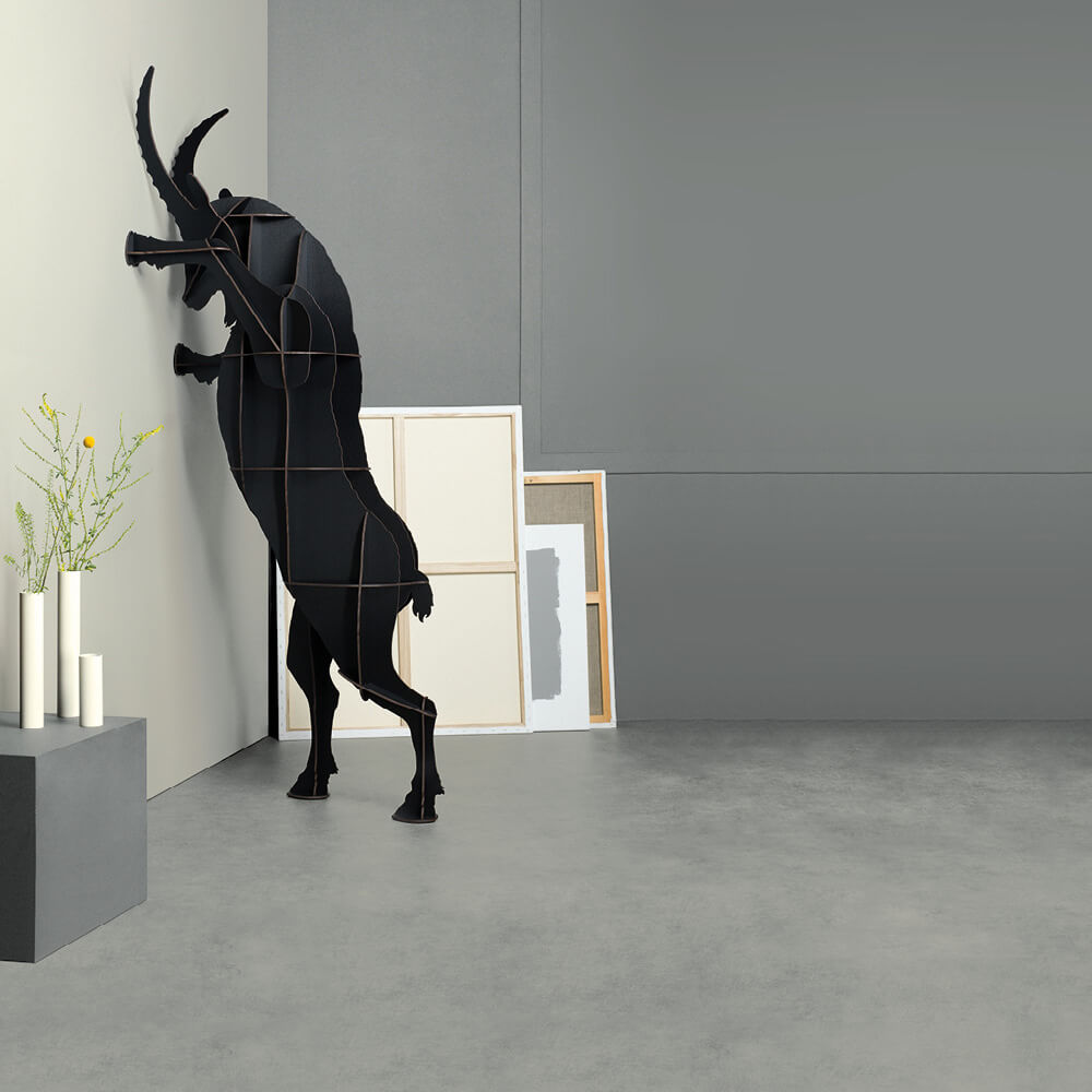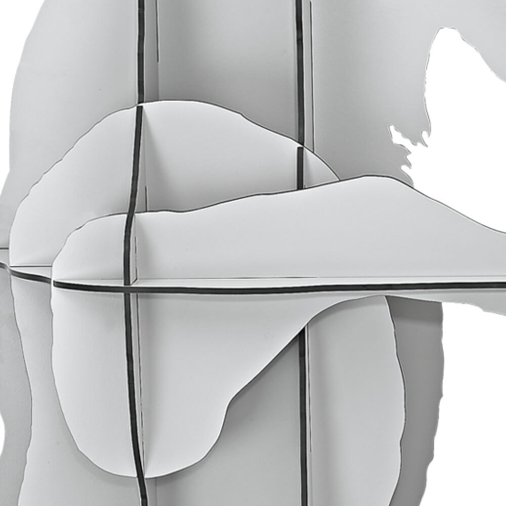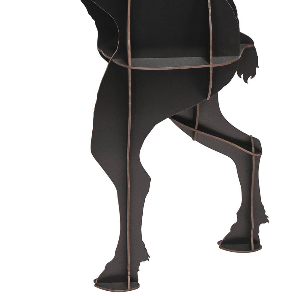 La bibliothèque FAUSTO de Ia marque Ibride fait partie d’une famille de meubles sculptures aux allures zoomorphes. Grimpeur vedette des cols alpins ou héros mythique de la littérature ? Comme son nom l’évoque dans les deux cas, le bouquetin est en proie à la lutte physique ou morale. Sculpture hissée sur ses pattes arrières à adosser au mur ou à adopter en duo dans une posture de combat, Fausto symbolise la force simple, impétueuse et élémentaire de la nature. Un mobilier surprenant pour ranger vos livres, vos objets déco, vos CD… Ultra design, cette bibliothèque décalée et originale trouvera facilement sa place dans un salon, dans une salle de restauration, dans un hall d’entrée … Fausto appartient à la collection « Mobilier de Compagnie » de la marque Ibride qui domestique les formes animales pour leur donner une utilité fonctionnelle toute humaine. Raffiné, troublant et robuste, Fausto vient s’insérer comme autant d’évidence dans les paysages intérieurs ou extérieurs. Fausto est conçu et fabriqué dans les ateliers d’Ibride en France, où le savoir-faire le plus raffiné rencontre des matériaux de la plus haute qualité. Le HPL (stratifié compact haute pression) utilisé dans cette création confère à Fausto une résistance aux chocs, à la chaleur et aux intempéries. Ce matériau hautement durable garantit au meuble son éclat et sa robustesse, quel que soit l’environnement. Fidèle à notre engagement environnemental, Fausto est livré à plat afin de limiter son empreinte carbone et de rendre le montage simple et intuitif pour tous. Un entretien simple suffit pour que Fausto conserve toute sa beauté sculpturale. Un chiffon doux et un peu d’eau savonneuse suffisent à préserver son aspect d’origine, quelle que soit l’exposition.